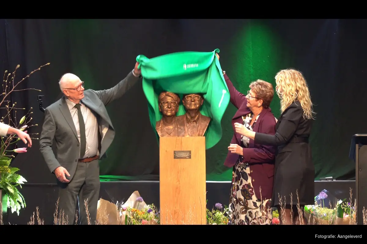 SINT MAARTENSVLOTBRUG - “Vier handen op één buik.” Zo typeert Vincent van Gijtenbeek (55) de relatie met zijn schoonvader Martien Konijn (78). Ruim 10 jaar geleden nam hij het agrarische bedrijf uit het Noord-Hollandse Sint Maartensvlotbrug van hem over. Uit waardering én vanwege het 60-jarige jubileum vond 20 februari een bijzonder en emotioneel moment plaats: de onthulling van een duo borstbeeld van Martien en zijn vrouw Anneke. “Prachtig, mijn schoonouders waren totaal verrast en overdonderd”, glundert Vincent.